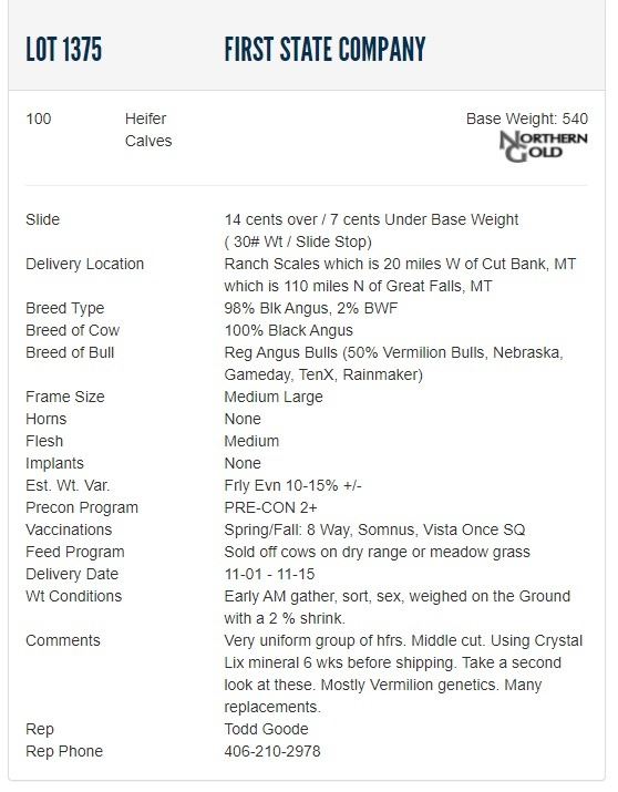 Delivery Location: Ranch Scales which is 20 miles W of Cut Bank, MT