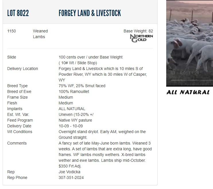 Comments A fancy set of late May-June born lambs. Weaned 3 weeks. A set of lambs that are extra long, have good frames. WF lambs mostly wethers. X-bred lambs wether and ewe lambs. Lambs ship mid-October. $350 Frt Adj.