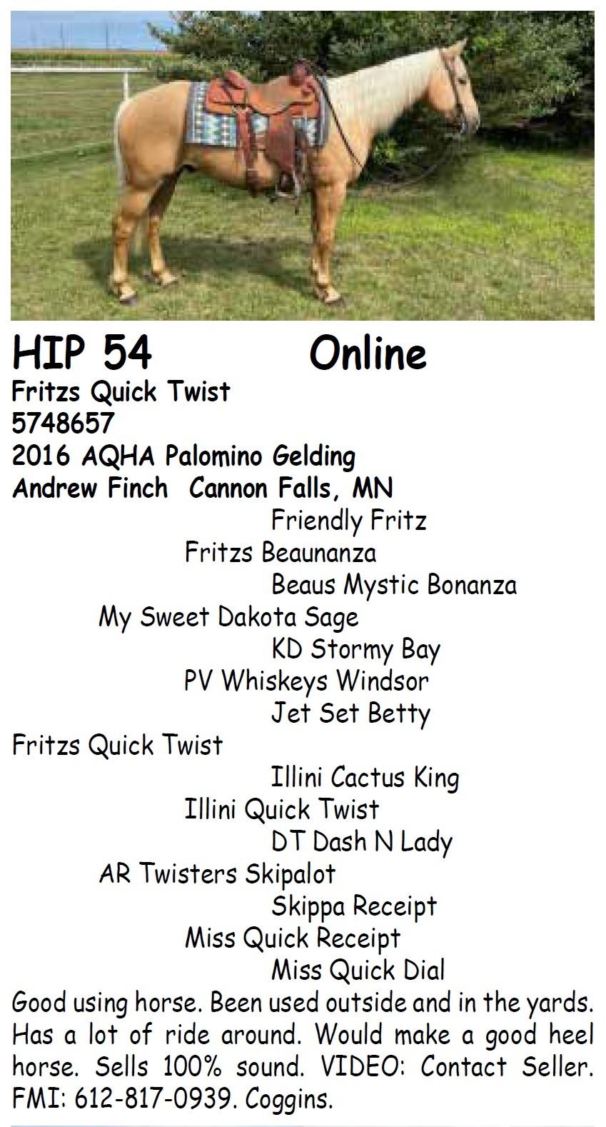 ALL AUGUST 26 SALE HORSES WILL BE AUCTIONED LIVE AT BILLINGS LIVESTOCK – Internet bidding also available for Online/ ShowCase Internet Sale Session horses offered in this sale