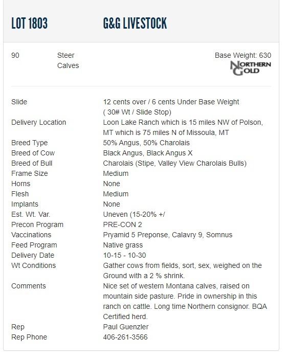 Comments Nice set of western Montana calves, raised on mountain side pasture. Pride in ownership in this ranch on cattle. Long time Northern consignor. BQA Certified herd.