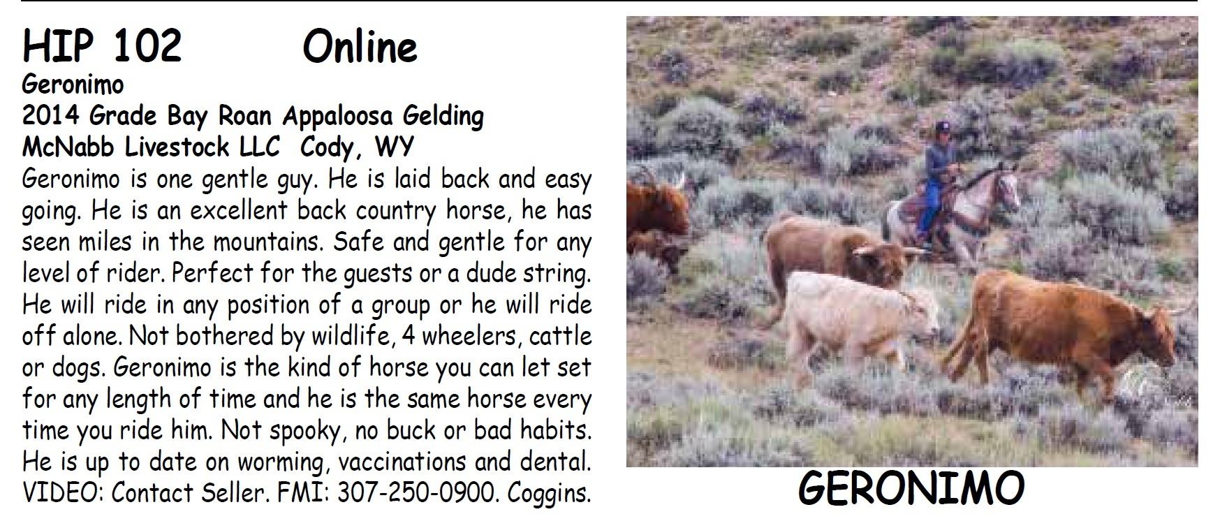 ALL AUGUST 26 SALE HORSES WILL BE AUCTIONED LIVE AT BILLINGS LIVESTOCK – Internet bidding also available for Online/ ShowCase Internet Sale Session horses offered in this sale