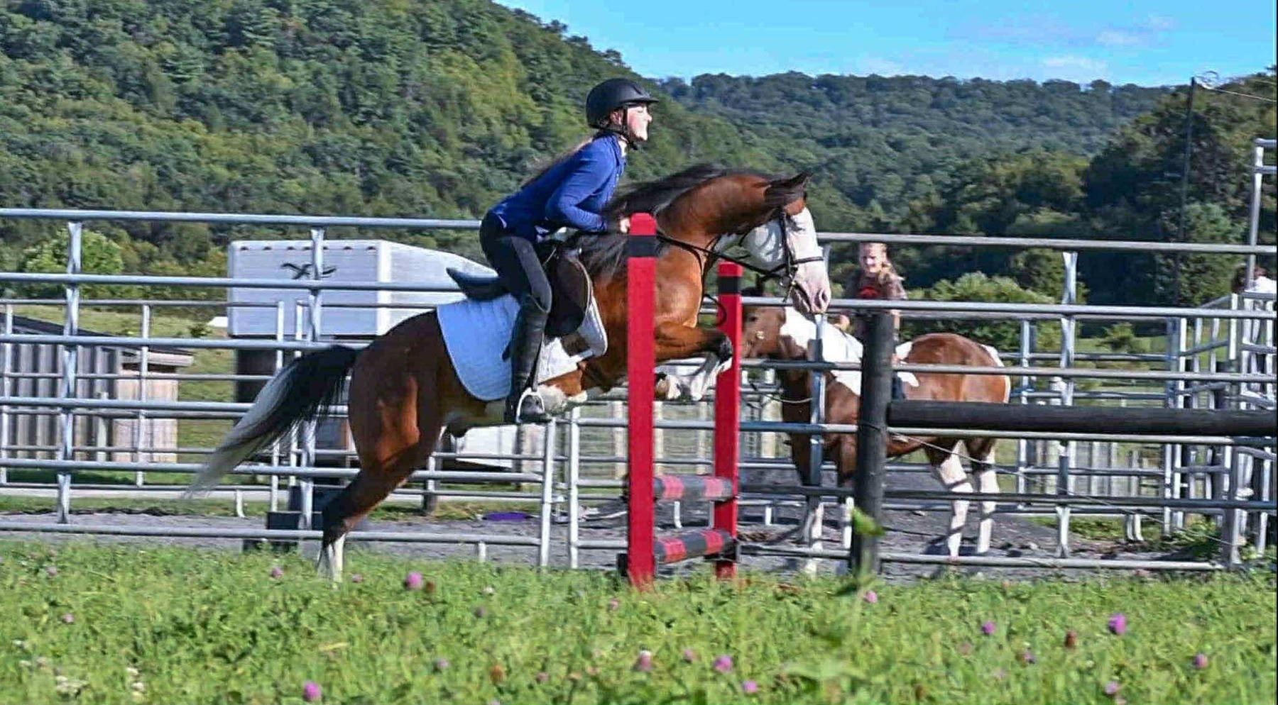 Let me introduce you to the coolest, brokest pony you will ever meet, "GUNNER", is a 5 year old 12.3hh gelding with all the class, all the talent and all the beauty you could ever dream of! This superstar of a pony doesn't miss a beat! He is the kind you can feel safe with your kids and trust that he will take care of them in any environment; around the farm, in the arena, out on the trails and everywhere in between! Gunner is the fanciest pony under English tack! He moves like a hunter and jumps to perfection! He would make a fantastic show pony! He has a lovely walk, trot, canter - he picks up both leads and has good brakes! Gunner is happy to pack around beginners and teach them the ropes, he is overall an easy idel and a kids best friend! Outside of the arena Gunner is a safe, trustworthy and solid trail partner! The kids ride him all over the farm, in the cow pasture, down the road, through the woods, in the water - you name it! This pony is unbothered by his surroundings and takes care of his rider every step of the way! If riding isn't your style - no problem! Gunner also drives the best! He stands good to be harnessed and drives wherever you point him! He is safe enough for beginners and children to drive and always stays calm and collected even in the busiest traffic! In the barn, Gunner is so sweet and loving. In the barn, Gunner is so sweet and loving. He adores attention and will stand all day long to be groomed and doted on. The kids run around and climb all over him and he always stands without a complaint - he's just happy to be here. He is an easy keeper, no vices or maintenance. Gunner is very laid back, he can be the only one in the barn and you'll never hear a peep out of him or he can be turned out in a mixed herd and gets along with everyone! The kids can pull him out of the field, bring him in, groom him, bathe him, tack him up without any help! He is just that easy. Gunner is a pleasure to be around him and our kids love playing with him, but he is ready to make his next child's dreams come true! Gunner is truly that very special, saintly, once in a lifetime pony that so many people are after, but few will find. If you think he is the one for you, please do not hesitate to reach out! Gunner deserves the BEST home where he will be loved and spoiled by his own little human!