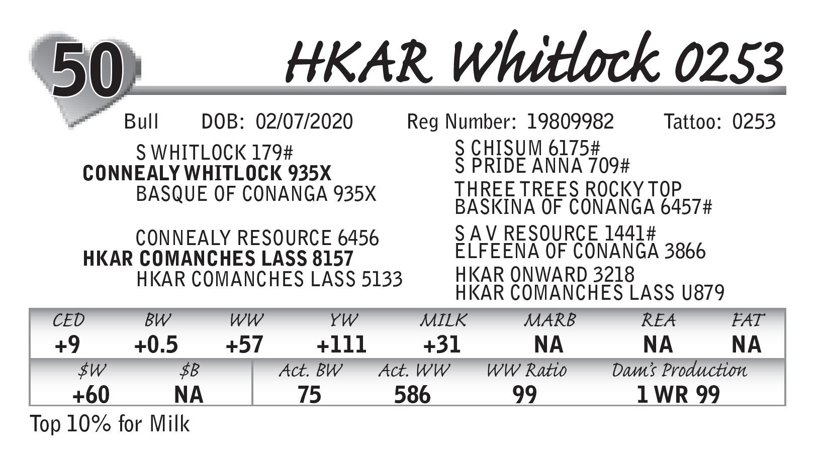Top 10% for Milk