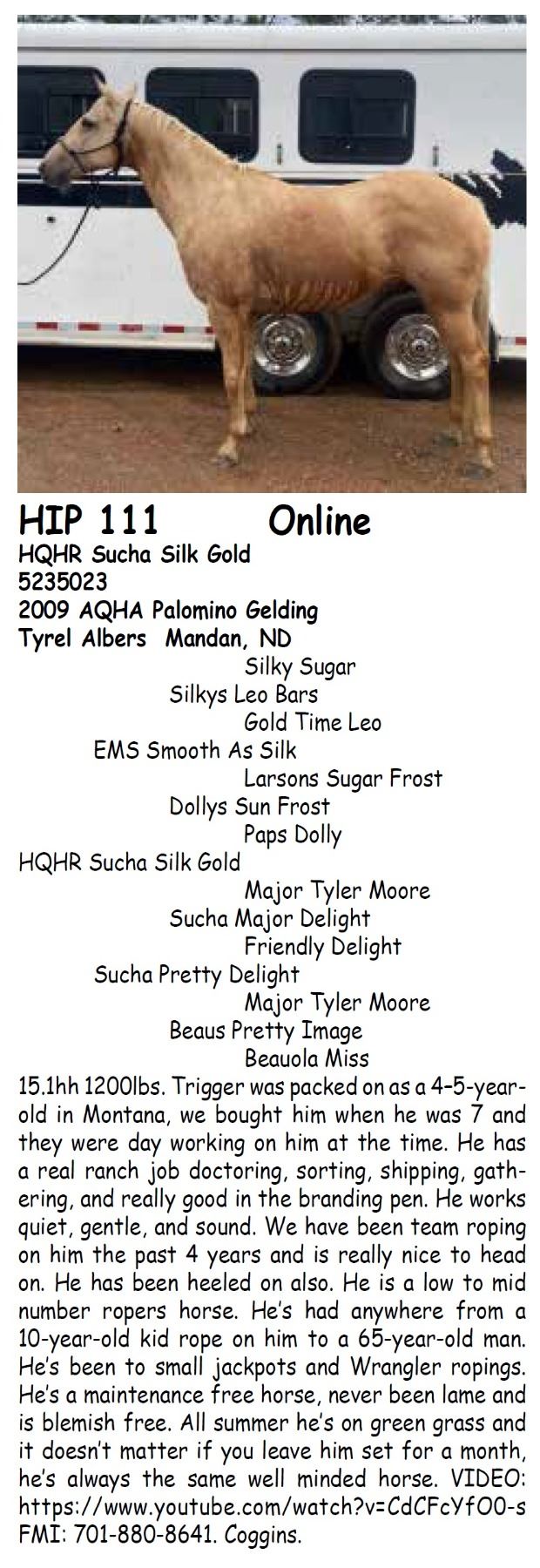 ALL AUGUST 26 SALE HORSES WILL BE AUCTIONED LIVE AT BILLINGS LIVESTOCK – Internet bidding also available for Online/ ShowCase Internet Sale Session horses offered in this sale