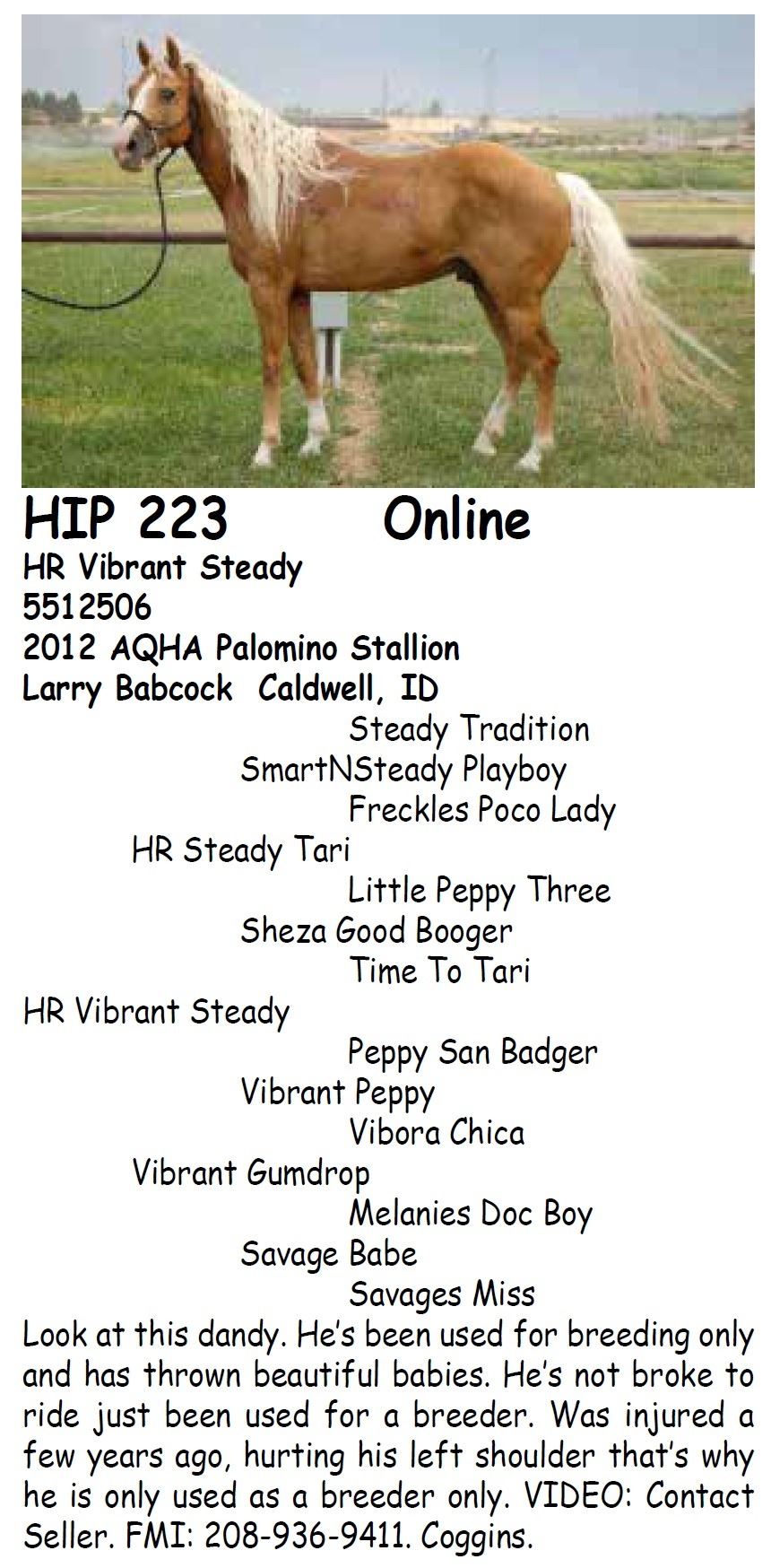 ALL AUGUST 26 SALE HORSES WILL BE AUCTIONED LIVE AT BILLINGS LIVESTOCK – Internet bidding also available for Online/ ShowCase Internet Sale Session horses offered in this sale