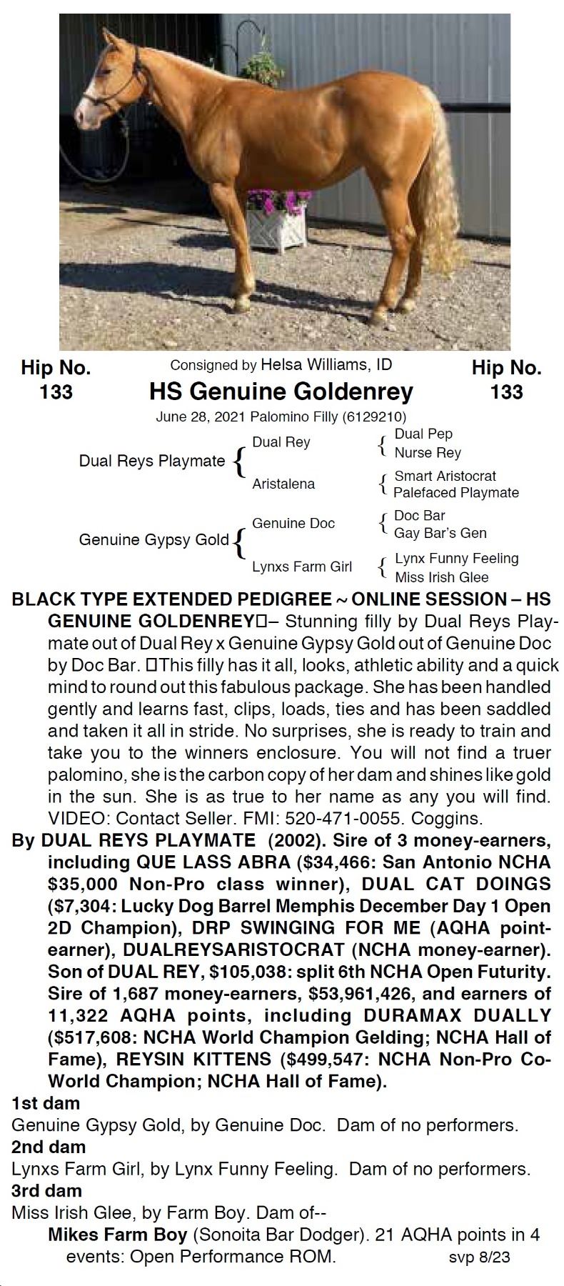 ALL AUGUST 26 SALE HORSES WILL BE AUCTIONED LIVE AT BILLINGS LIVESTOCK – Internet bidding also available for Online/ ShowCase Internet Sale Session horses offered in this sale