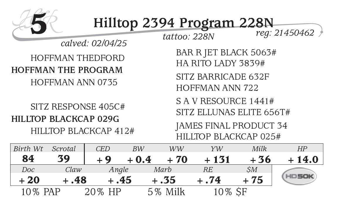 All persons who attend this sale do so at their own risk, legal or otherwise. Hilltop Angus assumes no liability for property loss or accident that may occur.