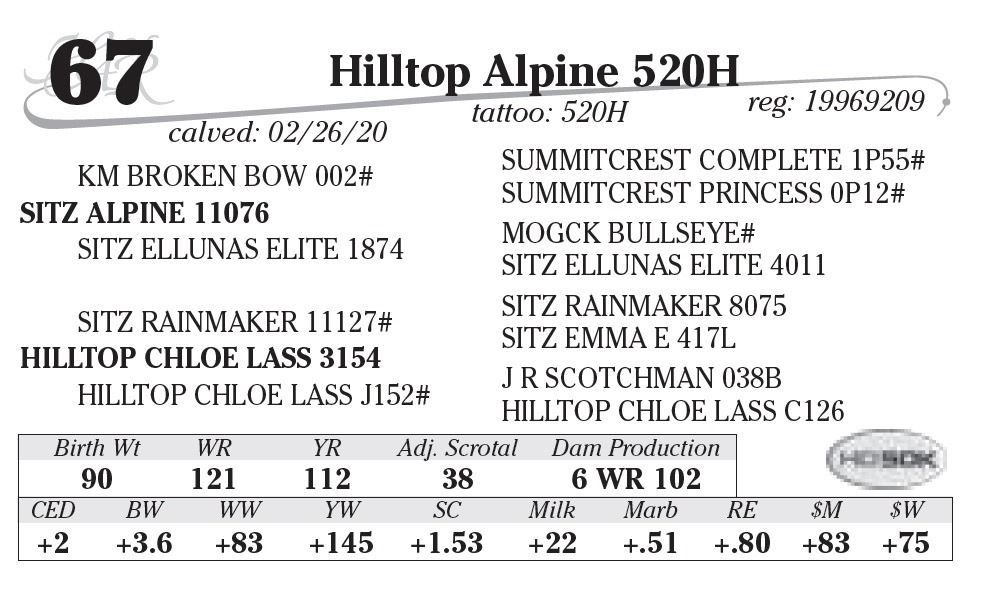 All persons who attend this sale do so at their own risk, legal or otherwise. Hilltop Angus assumes no liability for property loss or accident that may occur.