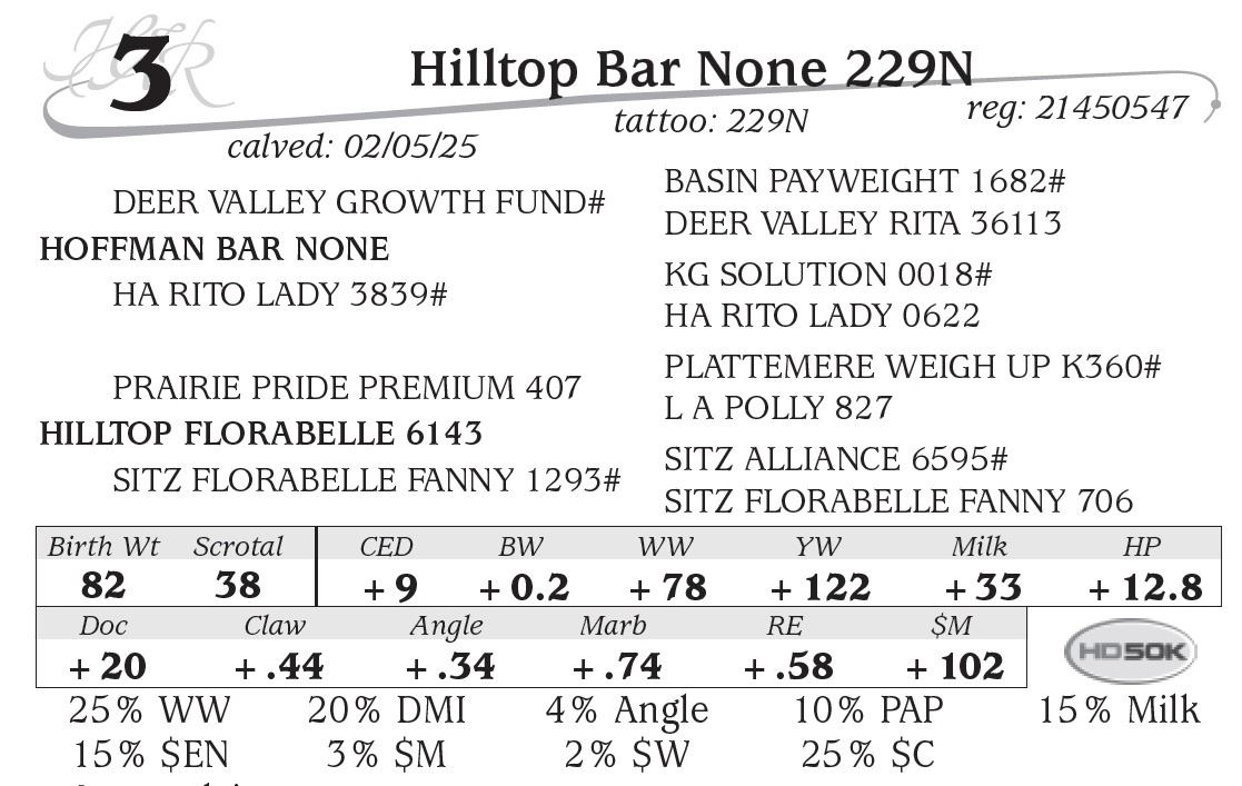 All persons who attend this sale do so at their own risk, legal or otherwise. Hilltop Angus assumes no liability for property loss or accident that may occur.