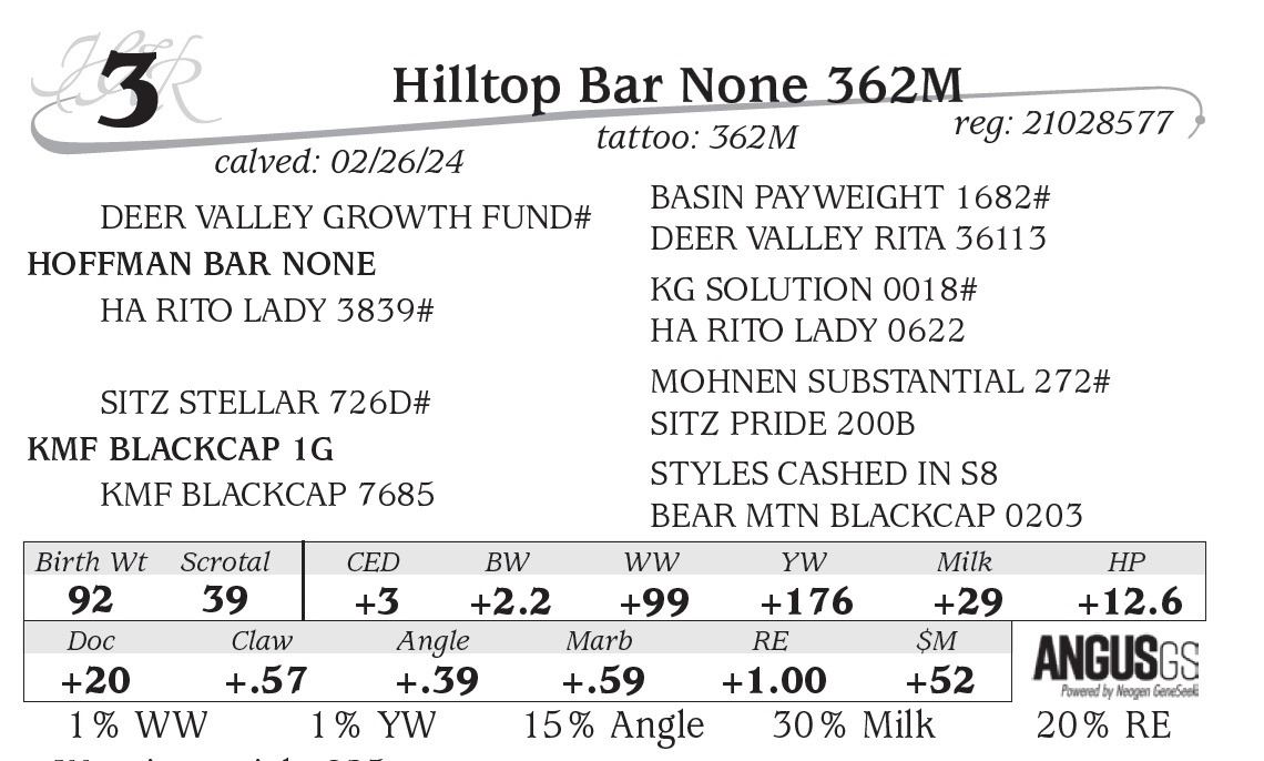 All persons who attend this sale do so at their own risk, legal or otherwise. Hilltop Angus assumes no liability for property loss or accident that may occur.