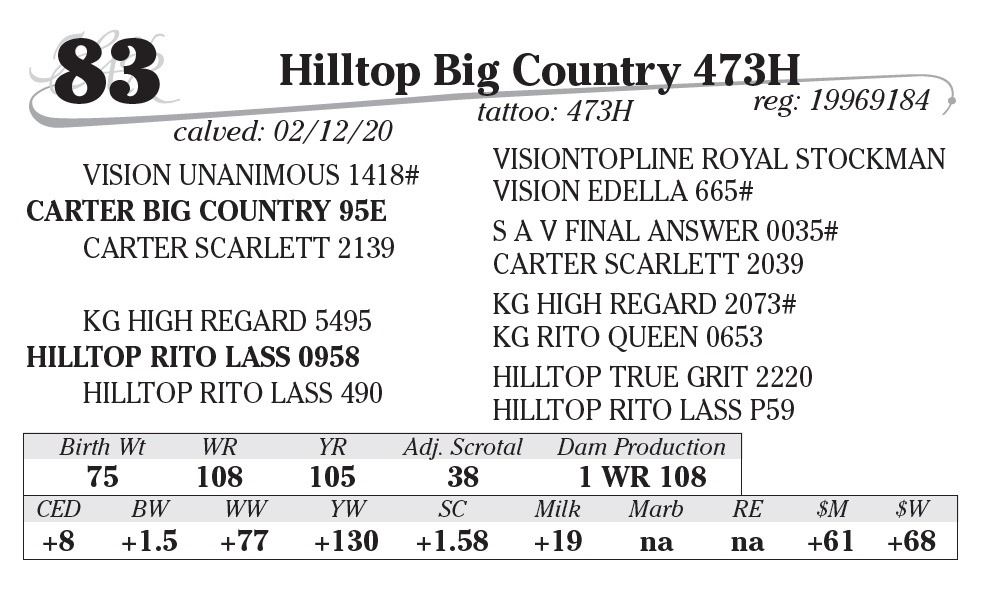 All persons who attend this sale do so at their own risk, legal or otherwise. Hilltop Angus assumes no liability for property loss or accident that may occur.
