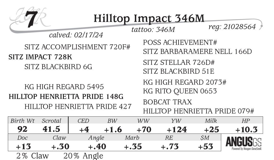 All persons who attend this sale do so at their own risk, legal or otherwise. Hilltop Angus assumes no liability for property loss or accident that may occur.