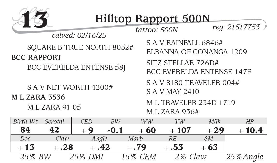 All persons who attend this sale do so at their own risk, legal or otherwise. Hilltop Angus assumes no liability for property loss or accident that may occur.