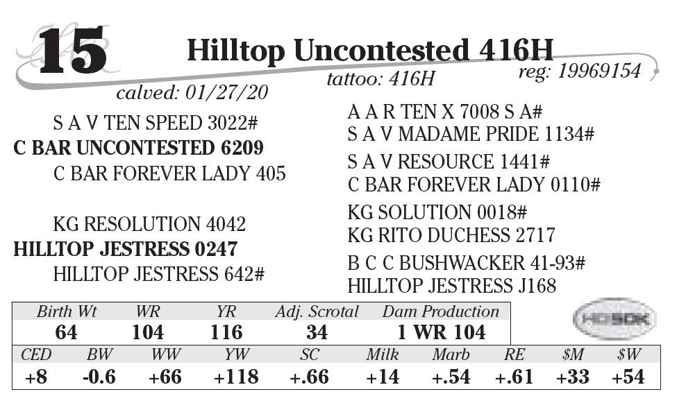 All persons who attend this sale do so at their own risk, legal or otherwise. Hilltop Angus assumes no liability for property loss or accident that may occur.