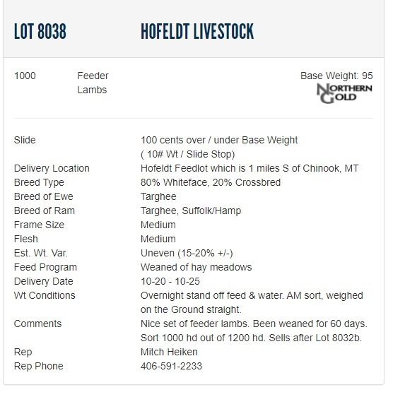 Hofeldt Livestock, 1000 Feeder Lambs @ 95 lbs.