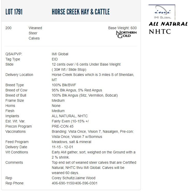 Comments Top end set of weaned steer calves that are Certified Natural, NHTC thru IMI Global. Calves will be weaned 60 days.