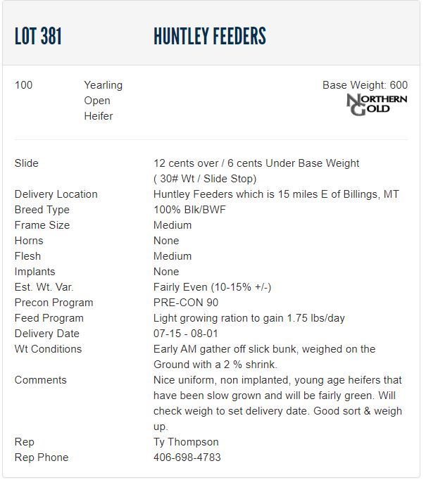 Delivery LocationHuntley Feeders which is 15 miles E of Billings, MT