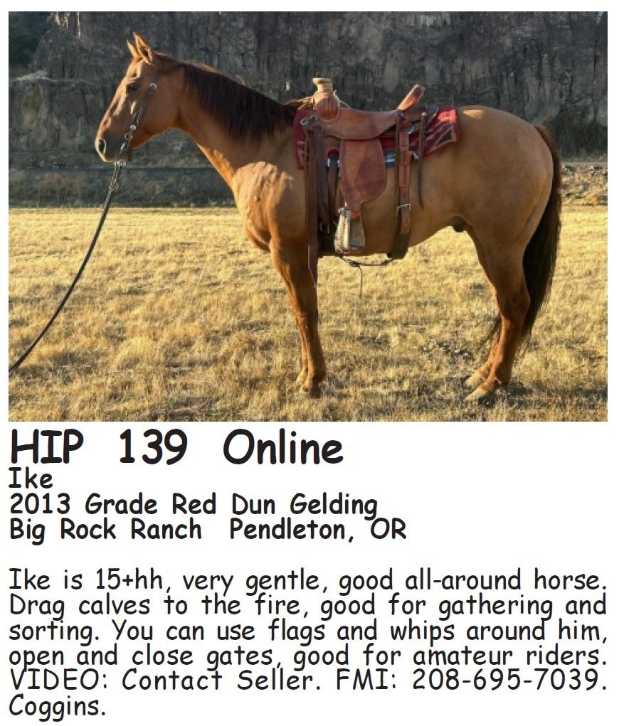 Ike is 15+hh, very gentle, good all-around horse. Drag calves to the fire, good for gathering and sorting. You can use flags and whips around him, open and close gates, good for amateur riders. VIDEO: Contact Seller. FMI: 208-695-7039. Coggins.
