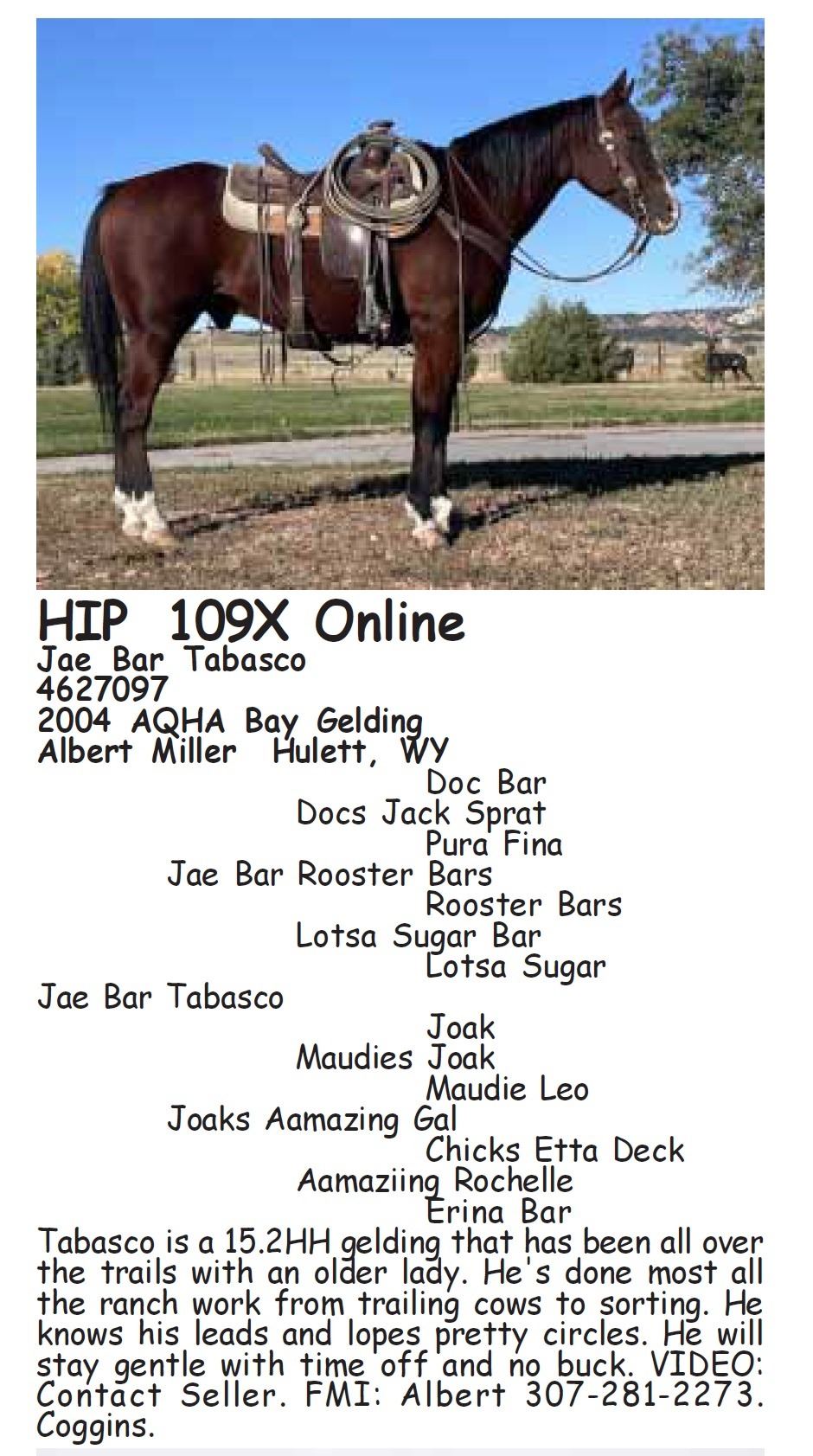 ALL OCTOBER 27-28 SALE HORSES WILL BE AUCTIONED LIVE AT BILLINGS LIVESTOCK – Internet bidding also available for Online/ ShowCase Internet Sale Session horses offered in this sale