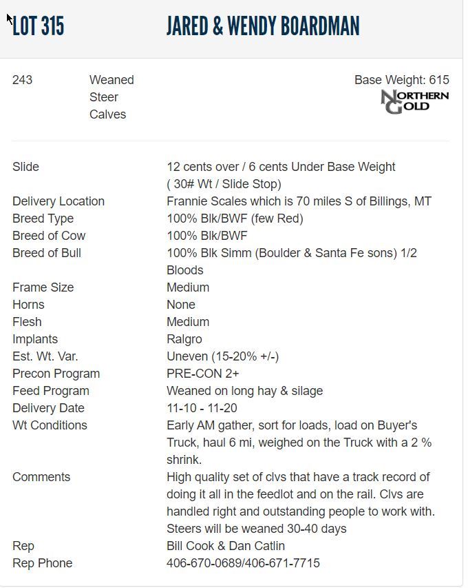 CommentsHigh quality set of clvs that have a track record of doing it all in the feedlot and on the rail. Clvs are handled right and outstanding people to work with. Steers will be weaned 30-40 days