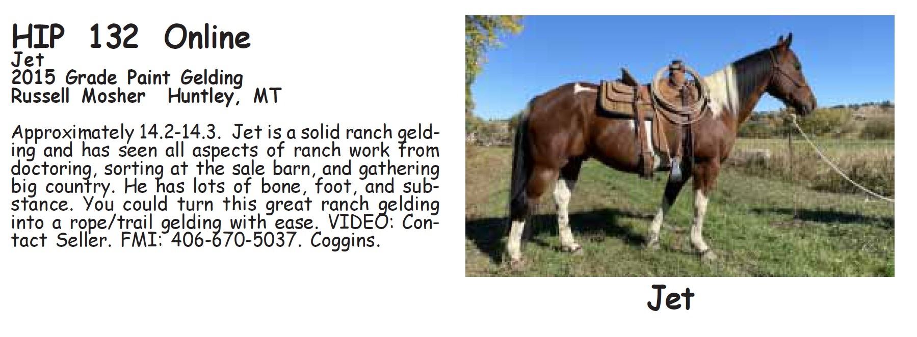 ALL OCTOBER 27-28 SALE HORSES WILL BE AUCTIONED LIVE AT BILLINGS LIVESTOCK – Internet bidding also available for Online/ ShowCase Internet Sale Session horses offered in this sale