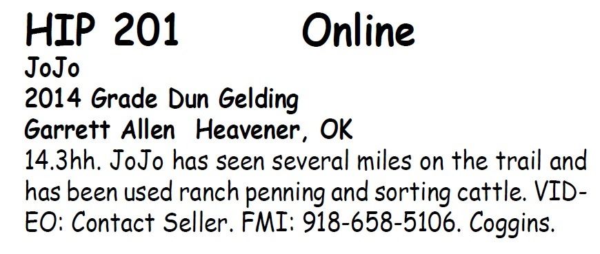 4. Horses are offered for sale according to the laws of the State of Montana, and the right to bid is reserved for all sellers in this sale.