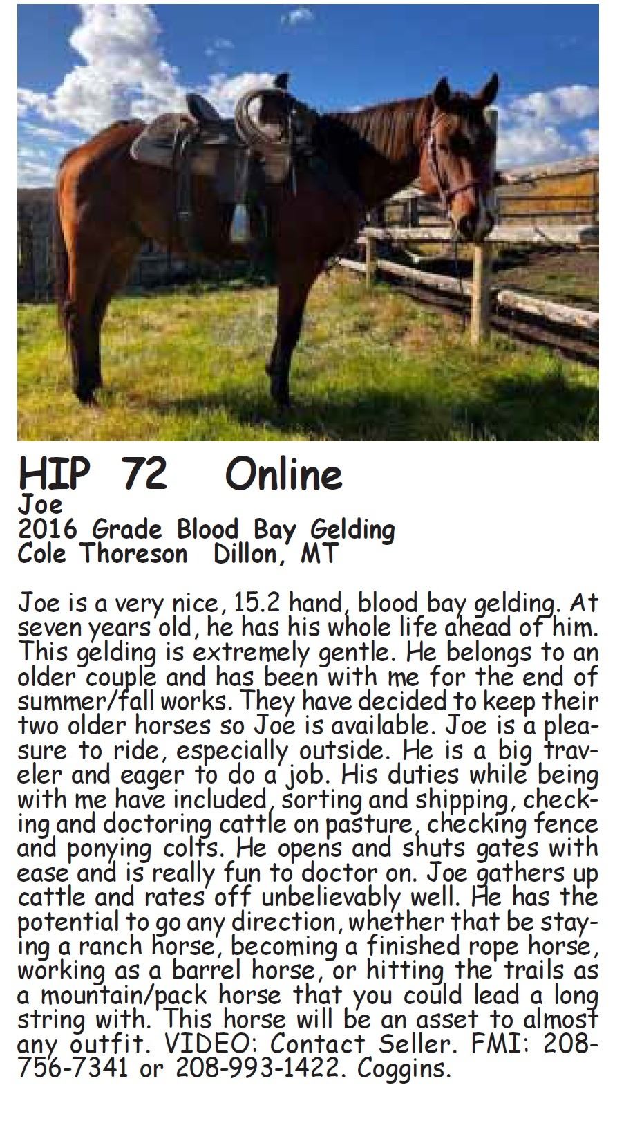 4. Horses are offered for sale according to the laws of the State of Montana, and the right to bid is reserved for all sellers in this sale.