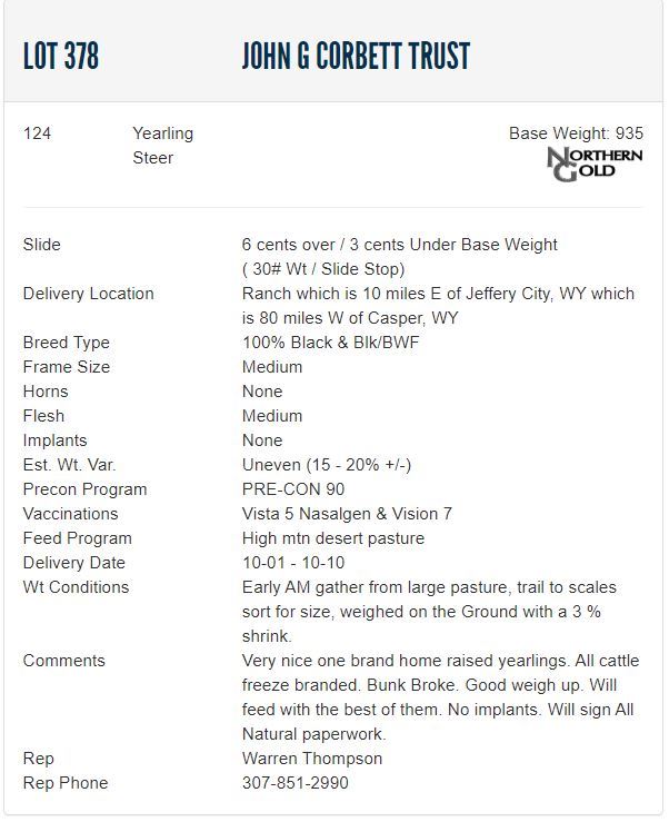 CommentsVery nice one brand home raised yearlings. All cattle freeze branded. Bunk Broke. Good weigh up. Will feed with the best of them. No implants. Will sign All Natural paperwork.