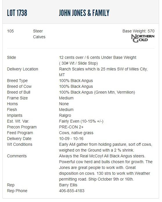 Comments Always the Real McCoy! All Black Angus steers. Powerful cow herd and bulls chosen for growth. The Jones are great people to work with. Great disposition on cows. 130 strs to work with.Weather permitting road. Ship October 9th or 16th.