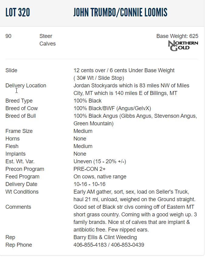 Delivery LocationJordan Stockyards which is 83 miles NW of Miles City, MT which is 140 miles E of Billings, MT