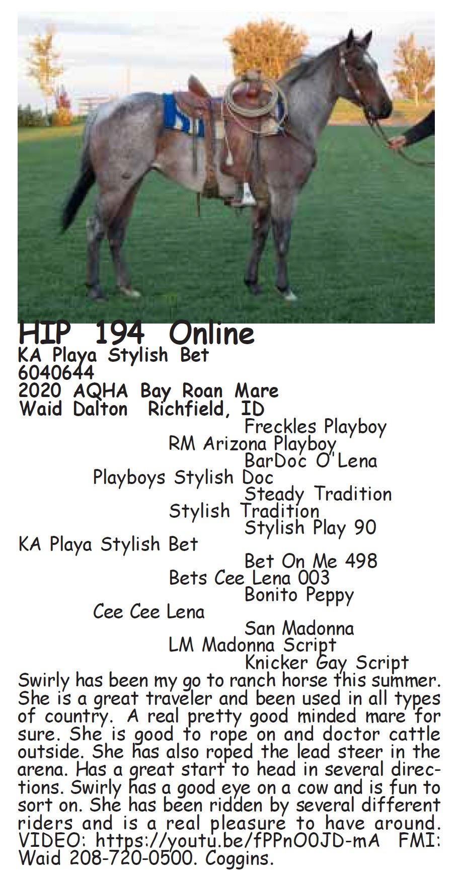 ALL OCTOBER 27-28 SALE HORSES WILL BE AUCTIONED LIVE AT BILLINGS LIVESTOCK – Internet bidding also available for Online/ ShowCase Internet Sale Session horses offered in this sale