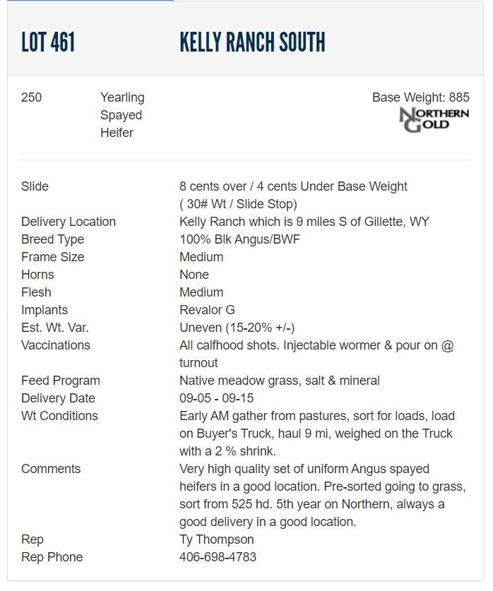 Delivery Location: Kelly Ranchwhich is 9 miles S of Gillette