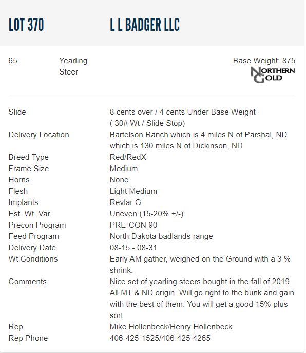 CommentsNice set of yearling steers bought in the fall of 2019. All MT & ND origin. Will go right to the bunk and gain with the best of them. You will get a good 15% plus sort