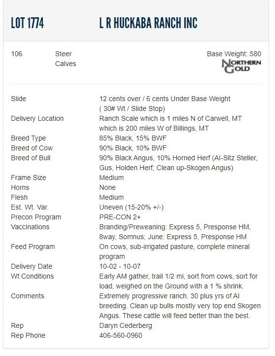 Comments Extremely progressive ranch. 30 plus yrs of AI breeding. Clean up bulls mostly very top end Skogen Angus. These cattle will feed better than the best.