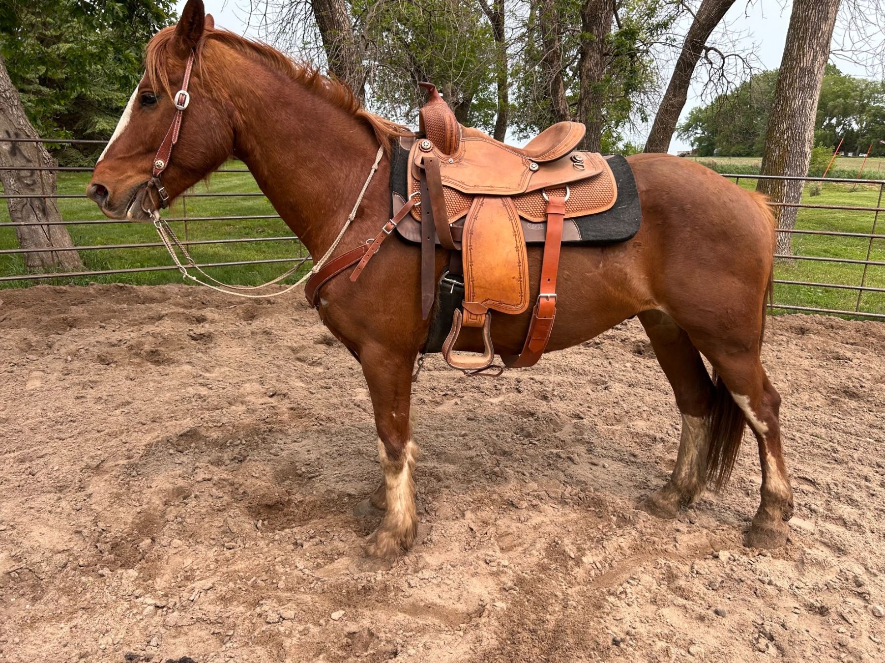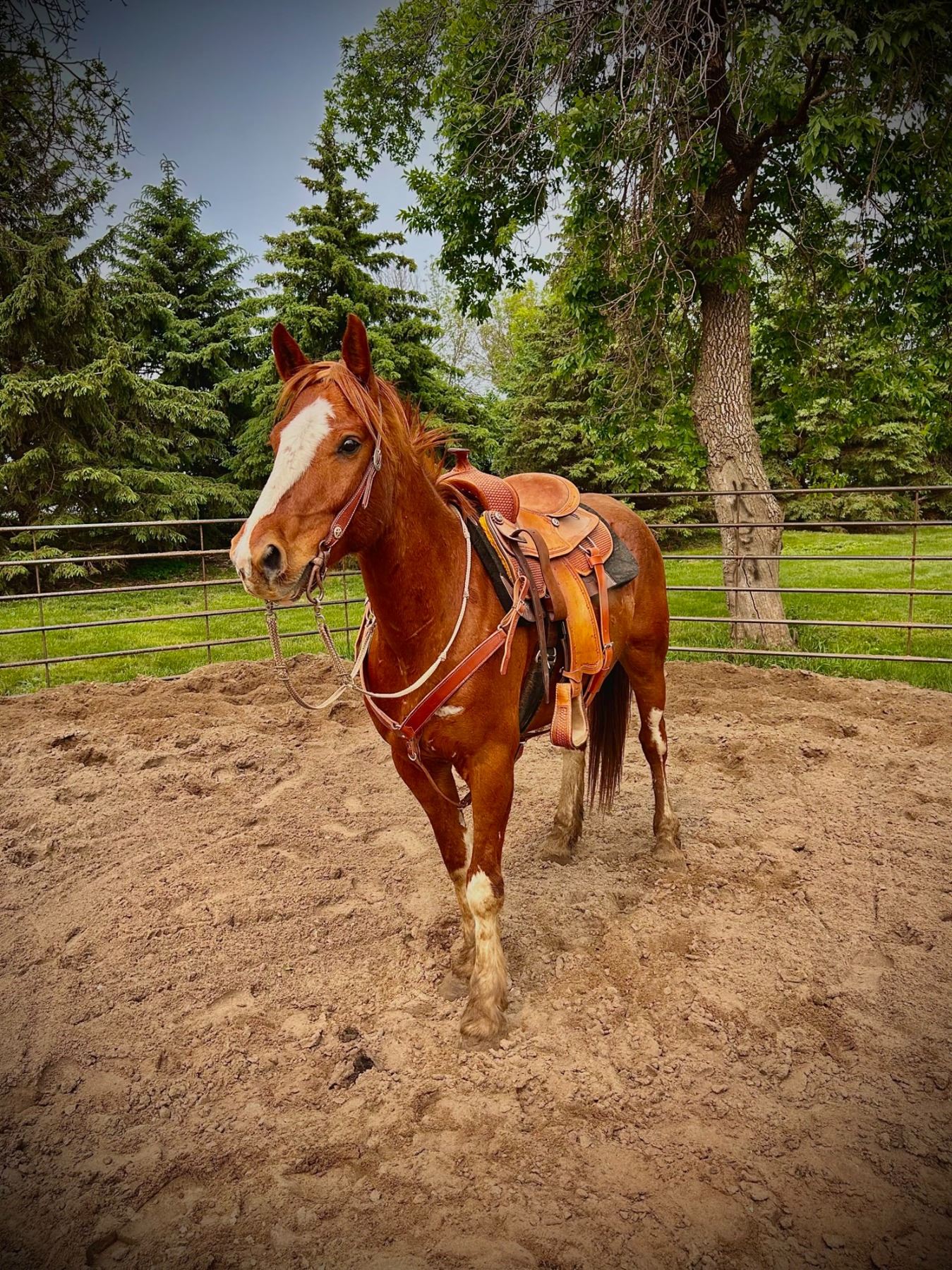 Lester is a friendly, hardworking horse. He is about 14.5 hands tall. He is not registered. He is the first to meet you at the gate and the last one to leave you. He stands tied, to be groomed, bathed, saddled, bridled, trimmed. He can go all day and do it again the next day. This horse can neck rein, lunge, ride in an arena, pasture, cattle yard, or down the road. He was harnessed as a 2 year old on a team, but has only been ridden mostly on the trails or in feedlots the past 6 years. A 15-year-old rode him all last summer and he did fun nights, trail rides, wagon trains. Not the fanciest horse and does not come with all the bells and whistles, but he is an honest horse. He has a tougher mouth, so a stronger rider is recommended. We have had little kids sit on him and led him around with them on. He has been ridden double with kids on him. He is safe on the ground, no spook. Little kids love to feed him treats and hay. Lester’s big personality makes him a family favorite, but he should be ridden consistently. If he sits for a few months he needs to be lunged before riding. Lester is a great, beautiful horse. Personality and looks. This is his first sale. He is sound, coggins negative, and ready for his next job. Willing to hold up to 15 days and can meet up to 70 miles. LOCATION: Inwood, Iowa. VIDEO: https://youtu.be/eJMPl-7eH1s FMI: 712-449-5868