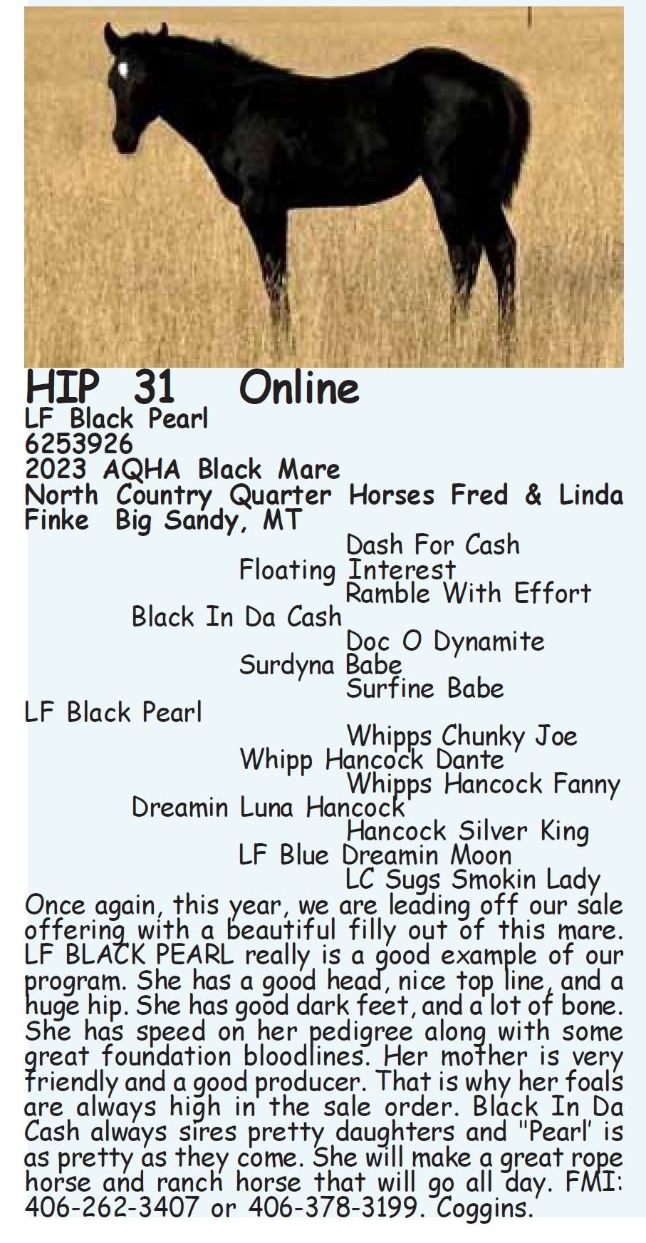 ALL OCTOBER 27-28 SALE HORSES WILL BE AUCTIONED LIVE AT BILLINGS LIVESTOCK – Internet bidding also available for Online/ ShowCase Internet Sale Session horses offered in this sale