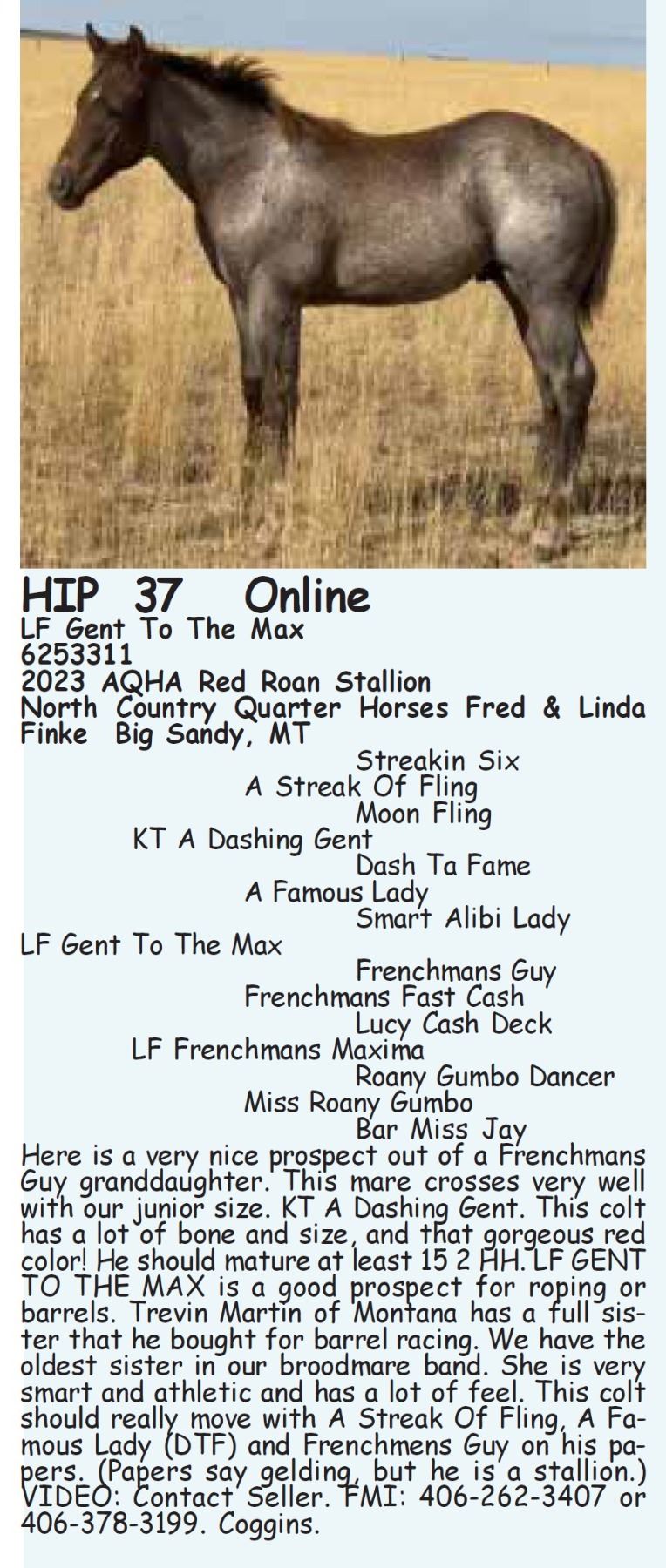 4. Horses are offered for sale according to the laws of the State of Montana, and the right to bid is reserved for all sellers in this sale.
