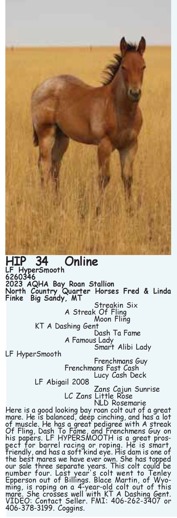 4. Horses are offered for sale according to the laws of the State of Montana, and the right to bid is reserved for all sellers in this sale.
