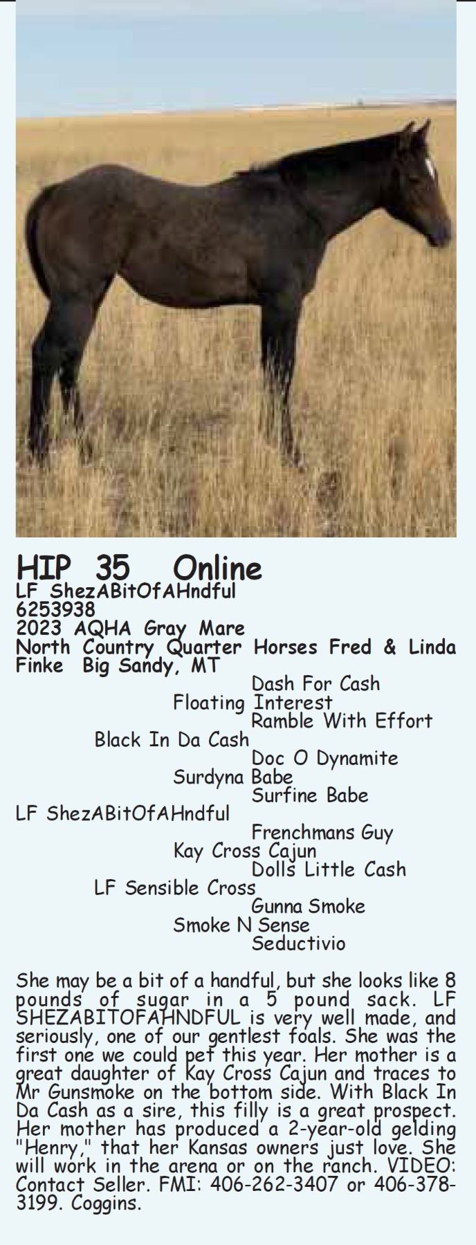 4. Horses are offered for sale according to the laws of the State of Montana, and the right to bid is reserved for all sellers in this sale.
