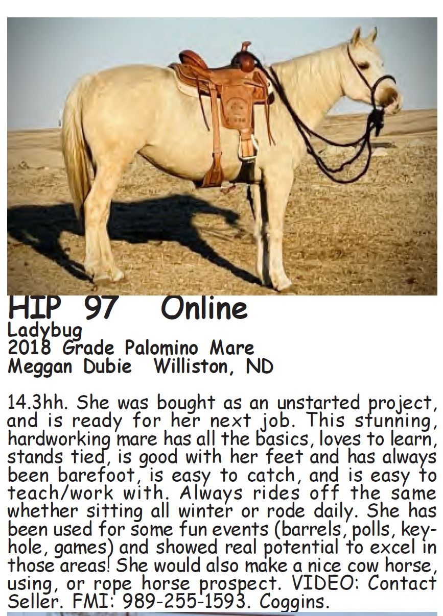 4. Horses are offered for sale according to the laws of the State of Montana, and the right to bid is reserved for all sellers in this sale.