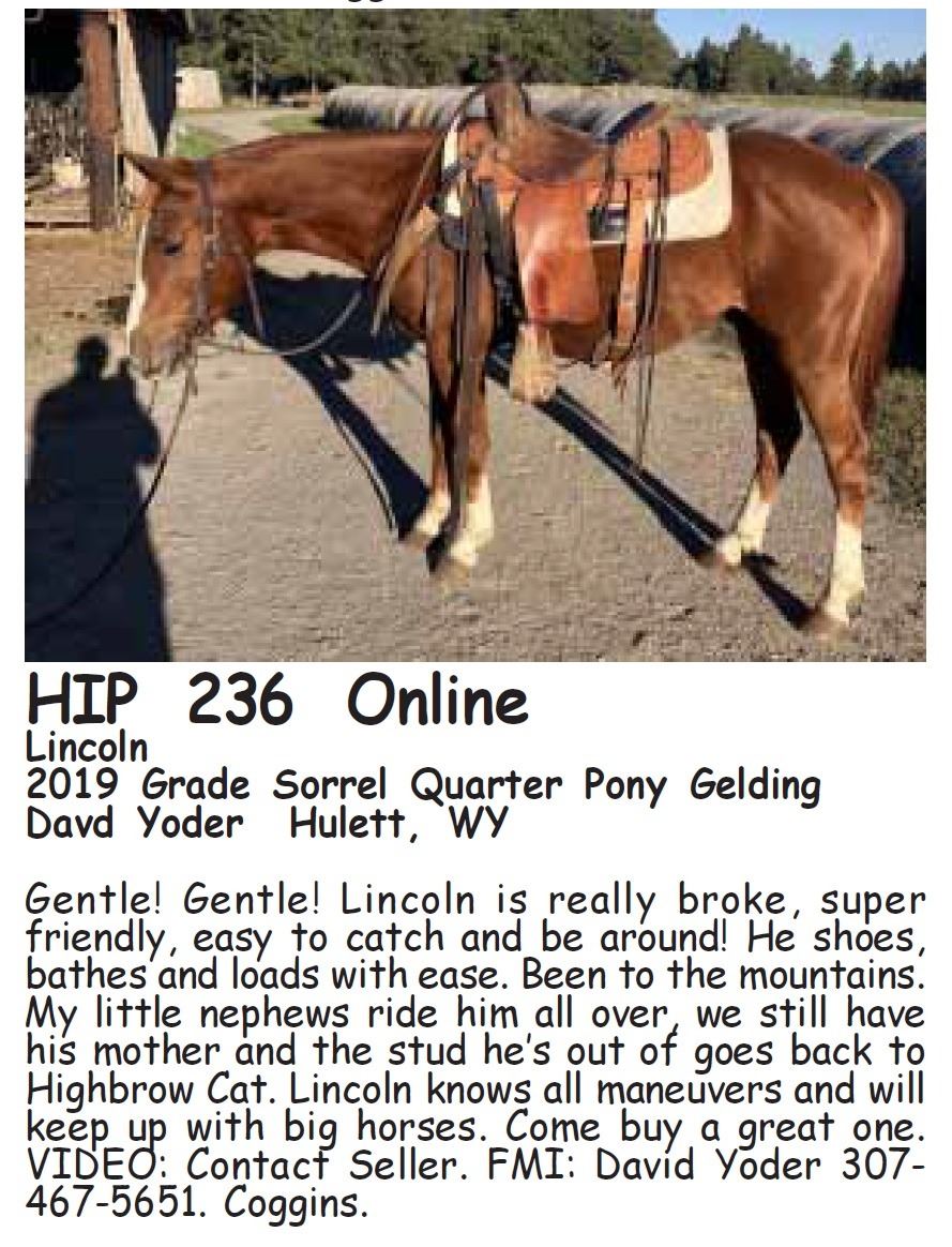 ALL OCTOBER 27-28 SALE HORSES WILL BE AUCTIONED LIVE AT BILLINGS LIVESTOCK – Internet bidding also available for Online/ ShowCase Internet Sale Session horses offered in this sale