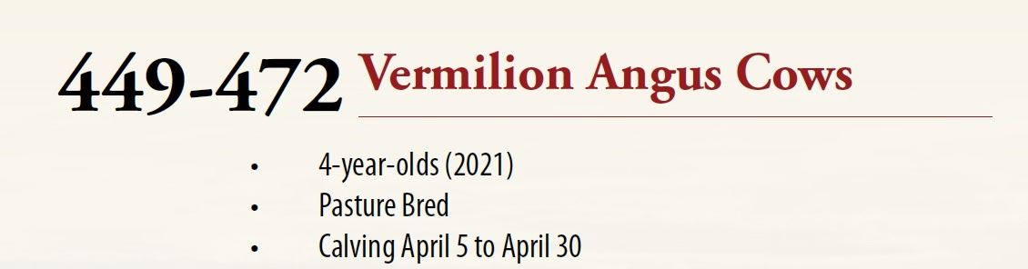 Lots: 449-472 VERMILION ANGUS COWS
