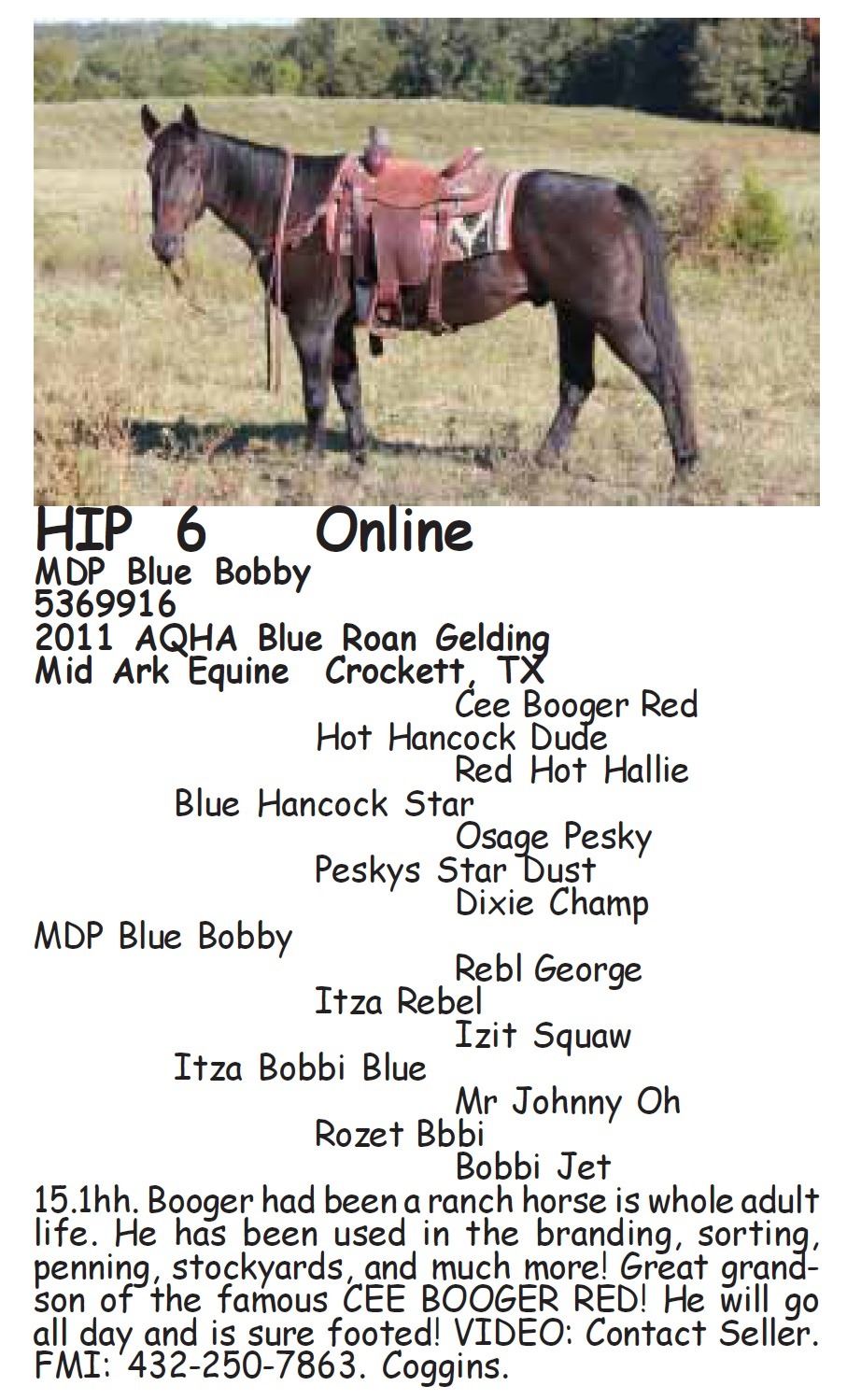 6. There is no guarantee of any kind as to the soundness or condition or other quality of any horse sold in this sale. Once the sale closes the sale is final.