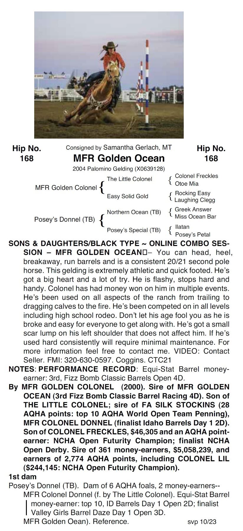 ALL OCTOBER 27-28 SALE HORSES WILL BE AUCTIONED LIVE AT BILLINGS LIVESTOCK – Internet bidding also available for Online/ ShowCase Internet Sale Session horses offered in this sale