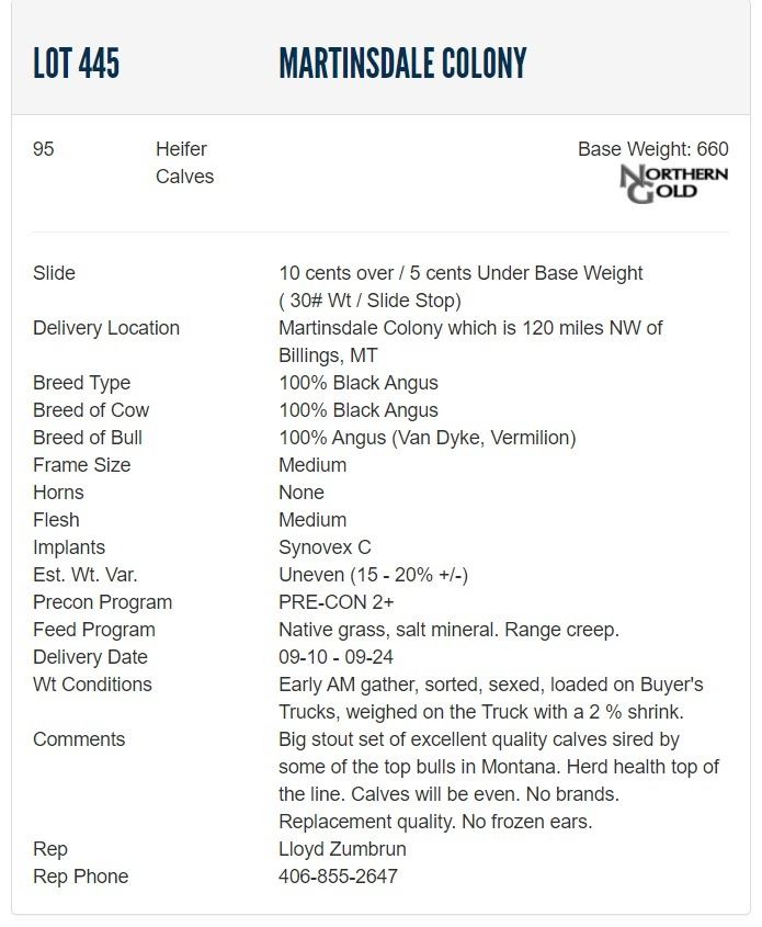 Comments Big stout set of excellent quality calves sired by some of the top bulls in Montana. Herd health top of the line. Calves will be even. No brands. Replacement quality. No frozen ears.
