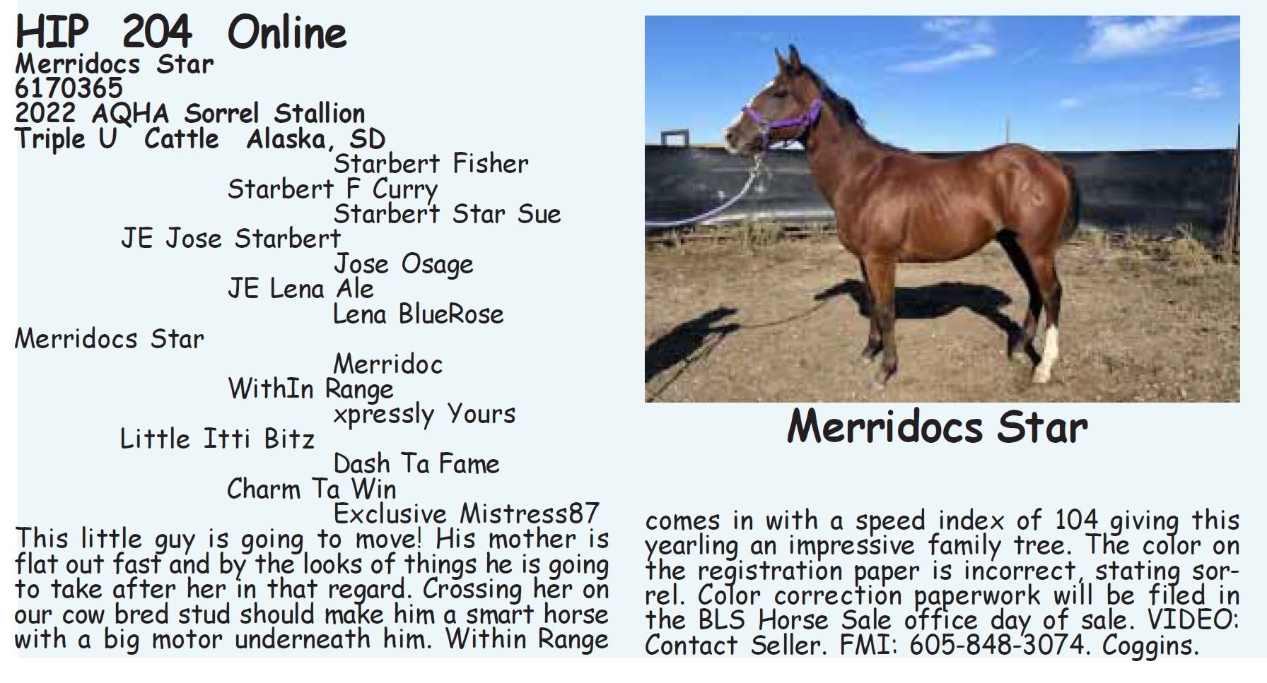 12 NOON: SALE TIME ON CATALOG HORSES