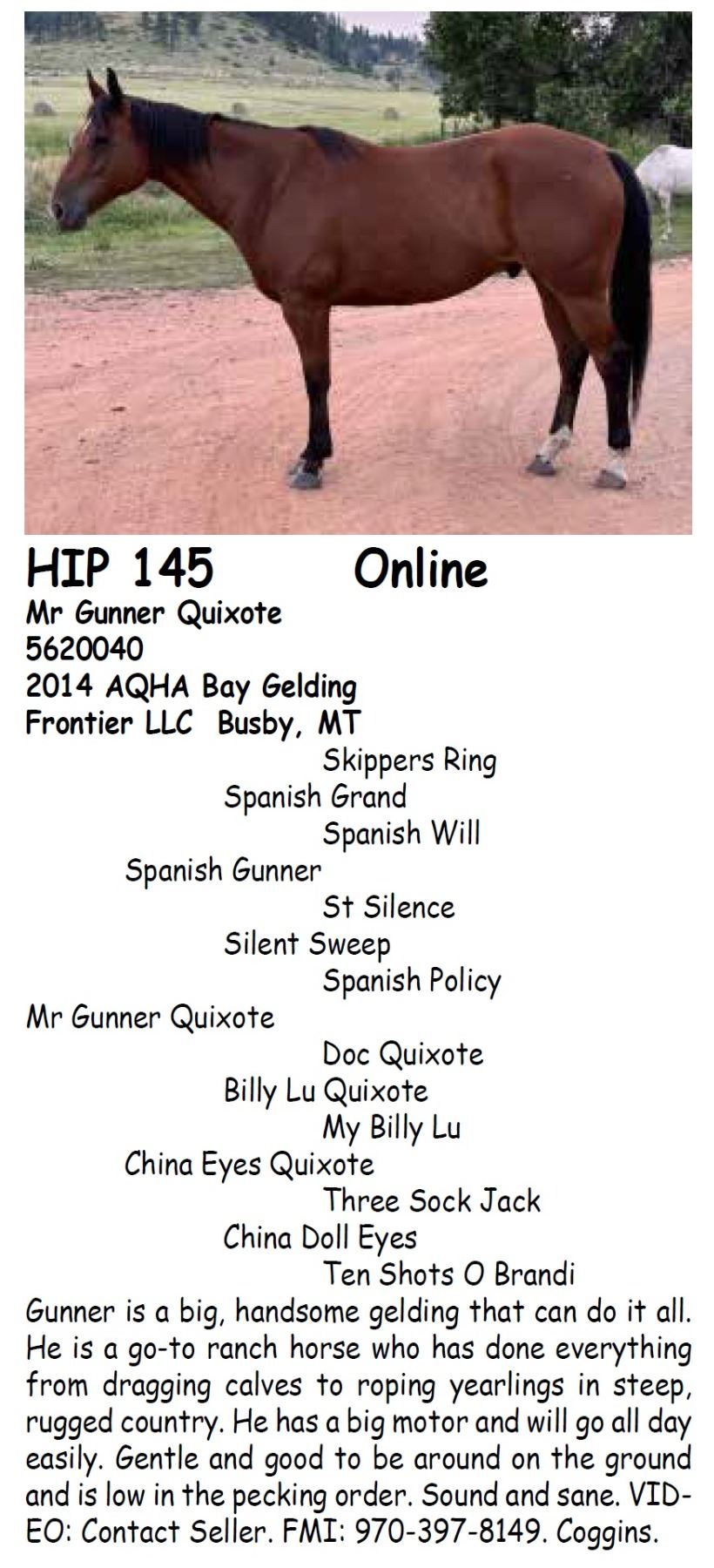 ALL AUGUST 26 SALE HORSES WILL BE AUCTIONED LIVE AT BILLINGS LIVESTOCK – Internet bidding also available for Online/ ShowCase Internet Sale Session horses offered in this sale