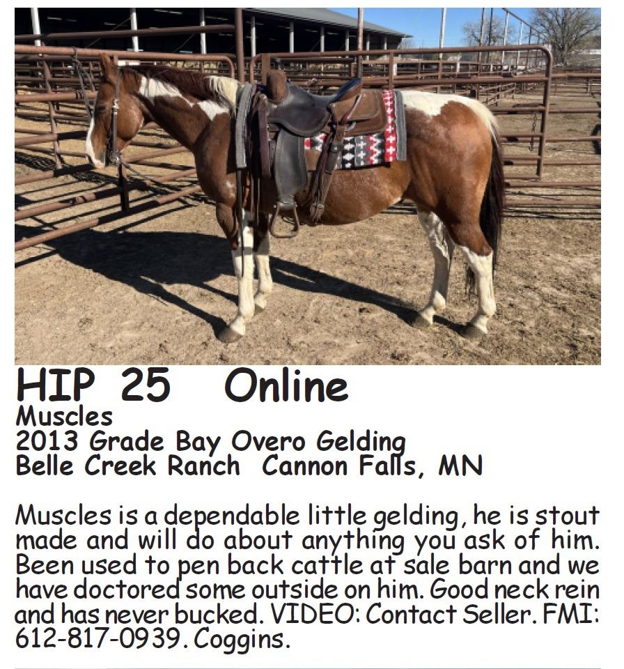 Muscles is a dependable little gelding, he is stout made and will do about anything you ask of him. Been used to pen back cattle at sale barn and we have doctored some outside on him. Good neck rein and has never bucked. VIDEO: Contact Seller. FMI: 612-817-0939. Coggins.