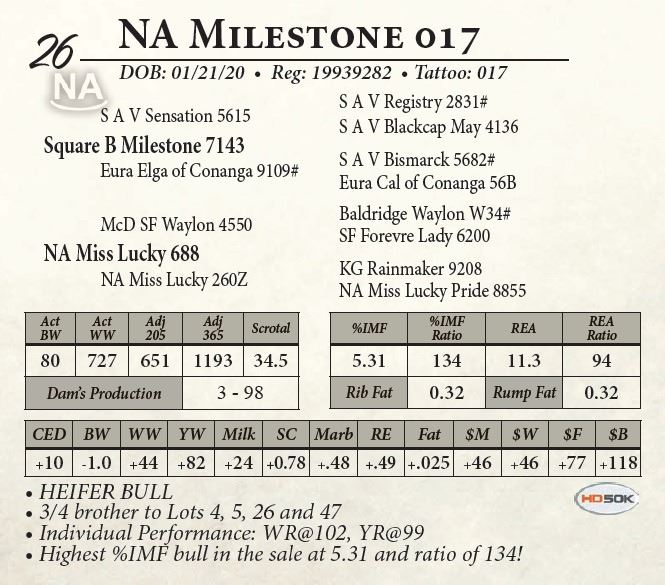 • Highest %IMF bull in the sale at 5.31 and ratio of 134!
