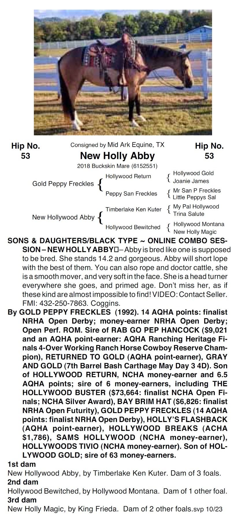 horses after the sale. Consignors will assist with holding of animals pending transport and assist with transport arrangements where noted in footnotes on individual horses.
